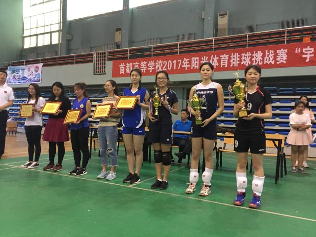 4月22日-23日, 首都高校2017年阳光体育排球挑战赛“宇生富”杯气排球比赛在北京交通大学大学举行,本次比赛由北京市大学生体育协会主办,北京市大学生体育协会排球分会承办,由深圳宇生富运动科技发展有限公司冠名赞助并提供比赛用球和奖励,同时得到北京市体育局排球运动管理中心的大力支持,来自北京大学、清华大学、中国人民大学、北京航空航天大学、bb贝博艾弗森官方网站等29所高校的44支代表队参加此次比赛,今年的参赛学校和参赛队伍创历史新高。我校排球队派出由体育部孟光云主任带队的男、女两队参加了此次比赛争夺,凭借平日的刻苦训练以及场上的良好发挥,最终荣获女子组第三名的好成绩。