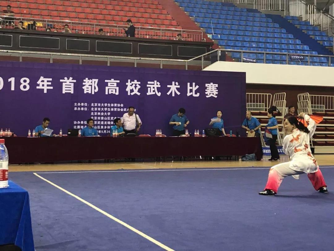 2018年5月26-27日,2018年首都高校武术比赛在房山区良乡体育中心成功举行圆满闭幕,本次比赛为首都高校中外学生提供了一个交流学习、切磋技艺、增进友谊的平台,是首都高校武术爱好者的一次盛会。来自首都37所高校的445名中外大学生参加了比赛。bb贝博艾弗森官方网站武术队在校领导的大力支持和体育部张月霜老师的精心指导下,取得男子团体第二名、女子团体第二名、男女团体总分第二名,金牌17枚,银牌9枚,铜牌3枚的好成绩。