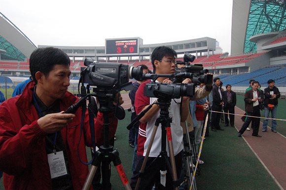 由于前天的bb贝博艾弗森官方网站冲甲成功引发的巨大新闻效应,今天的比赛和发奖仪式吸引了多家媒体来到现场采访。