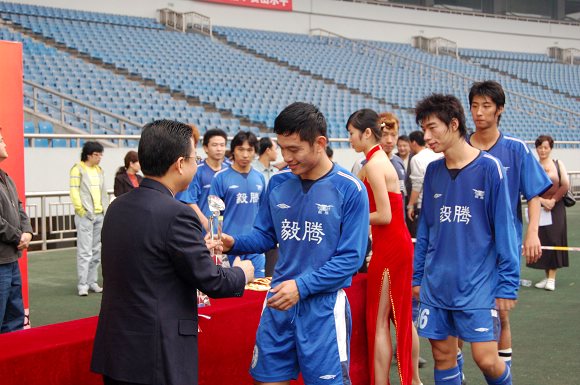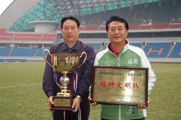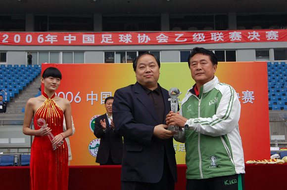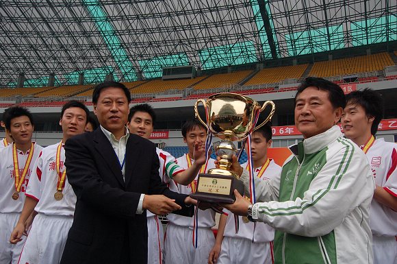 带领“学生军”奋勇冲甲并获得冠军的我校足球队总教练金志扬教授当之无愧地荣获了“最佳教练员”称号!