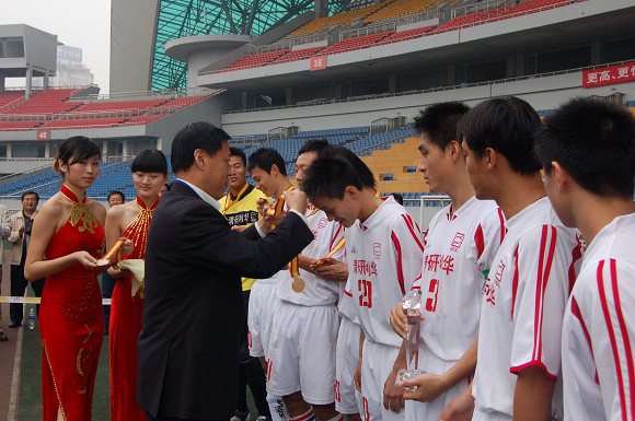 最后由中国足协纪律委员会主任马成全为我校足球队颁发金牌。