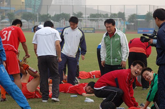 90分钟的比赛随后很快结束了,即将进入加时比赛,队员们经历了过山车般峰回路转,加上拼的又比较厉害,一个个都爬在了草地上休息,这时,所有的教练和替补队员都主动走上前来为队员进行放松肌肉的按摩,总教练金志扬教授这时说道:能在最后一分钟把比赛扳回来,这也许是上天的安排,但是,上天给了你们这次机会,你们一定要抓住,而且你们一定能够抓住,再拼30分钟,大不了进行点球决战,我们都不怕。对方也一样是精疲力尽,而且在领先后已经将前锋和两个主力队员换下了,我们个个都是主力,有什么怕的?