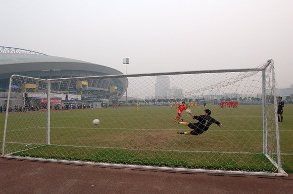 点球决战异常残酷,前五轮罚球,双方各射失一球,开始进入单轮罚球决胜后,双方又都各进一球。罚球进行到了第七轮时,对方队员似乎想声东击西,但在巨大的压力之下动作变形,竟然将球打飞,只要我方再进一球,就将创造历史。