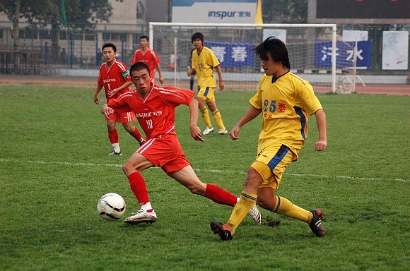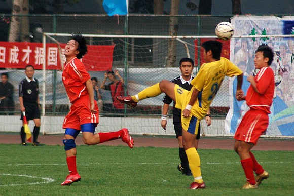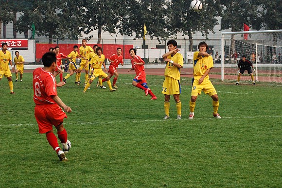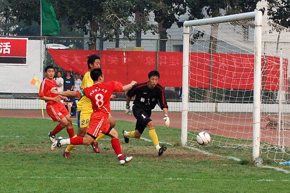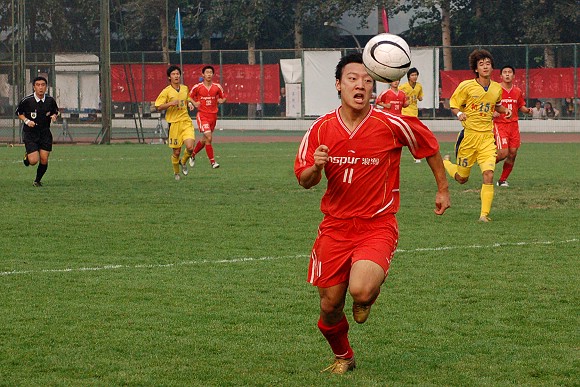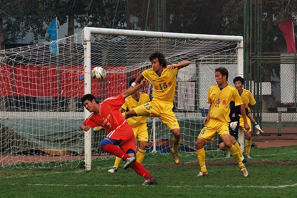 经历了十几场乙级联赛的磨炼,我校足球队已经数次将落后的比分追平甚至反超,因此全队队员依然兢兢业业,全力拼抢,丝毫没有任何松懈。