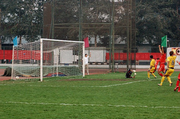 对方守门员鞭长莫及,双方比分终于拉平。