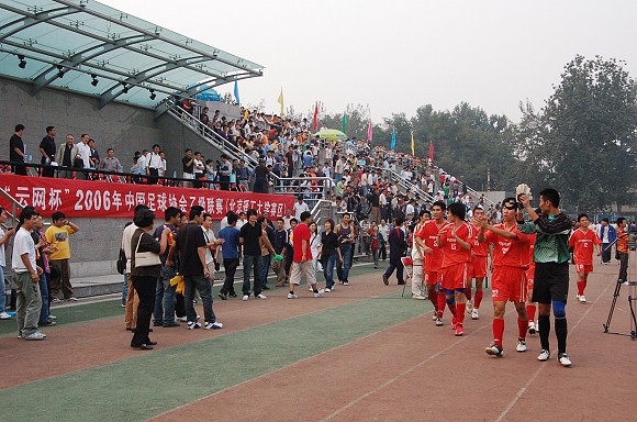 在联赛上半程的比赛中,我校足球队由于刚刚参加完2006李宁大学生足球联赛,在十天内连续打了八场比赛并夺取了冠军,之后球队的整体状态非常疲惫,在客场曾以0:4惨败于天津火车头队(点击此处可进入相关链接),这也是bb贝博艾弗森官方网站足球队参加乙级联赛以来的惟一一场败绩。此番主场作战,实际上bb贝博艾弗森官方网站足球队只要再取一分,就可稳获北方赛区冠军,因此全队上下士气高昂,决心全力以赴,力争战胜对手,同时也实现提前夺取北方赛区冠军的目标。而天津火车头队也是来者不善,善者不来,他们也力争再次击败主队,即使总分追不上前两名,也要争取成为能够再次战胜bb贝博艾弗森官方网站足球队的“无冕之王”。