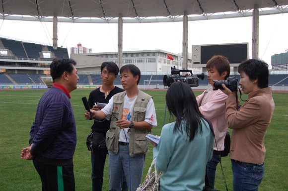 此次到新疆打客场比赛由我校党委书记焦文俊亲自率队,这是赛前焦书记在与总教练金志扬在亲切交谈。