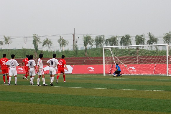 紧张的比赛一直进行到下半场第40分钟,我方场上队长8号袁微带球由底线附近突入禁区,在过人时被对方队员恶意绊倒,我方获得一个珍贵的点球,由6号队员于飞主罚。