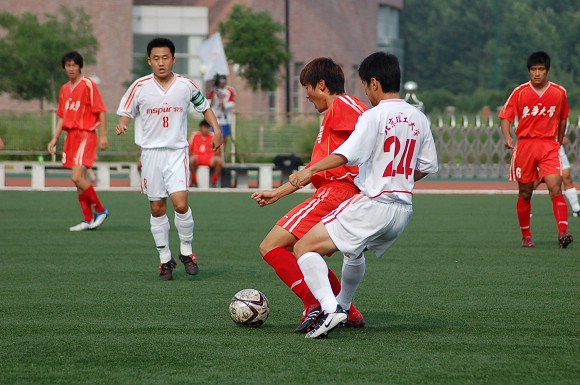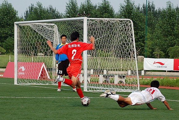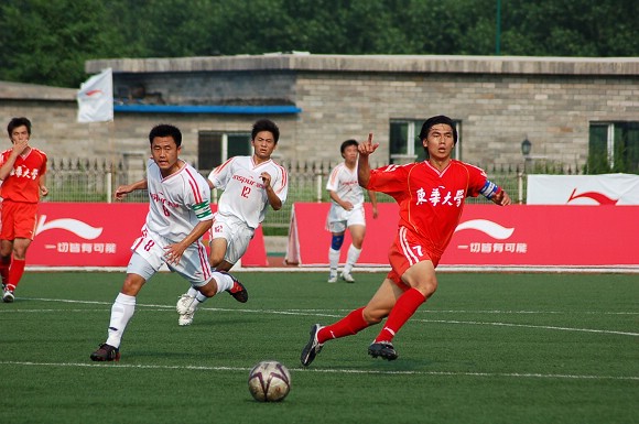 7月7日下午,我校足球队在沈阳理工大学足球场迎来了李宁杯第六届中国大学生足球联赛的半决赛,对手为东华大学足球队。东华大学队可谓是我校的老对手,在2004年全国大运会的足球决赛中与我校足球队战成平局,最后靠点球大战获得冠军,我校足球队屈居第二(点击进入相关报道)。在2005年飞利浦第五届中国大学生足球联赛的半决赛中,由于我校足球队处于新老交替时期,再次以0:2告负东华大学队(点击进入相关报道),在三、四名决赛中又负于同济大学队从而名列第四(点击进入相关报道),而东华大学队则在决赛中战胜中国人民大学队获得冠军。