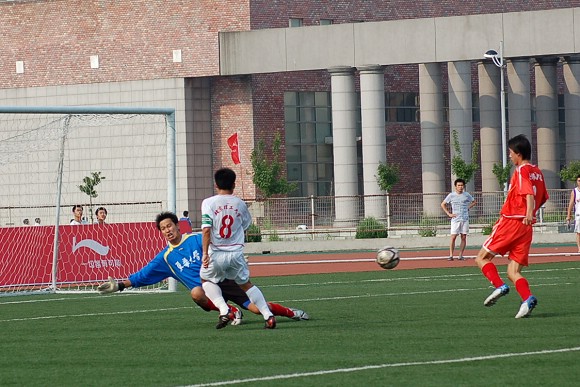 下半场的比赛进行到第30分钟时,东华大学队获得了一次意外的门前补射机会,将比分搬为1:1。