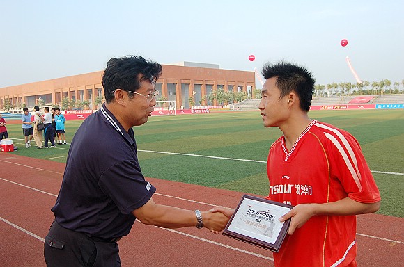 2005~2006李宁中国大学生足球联赛总冠军队伍闪亮登场。