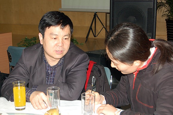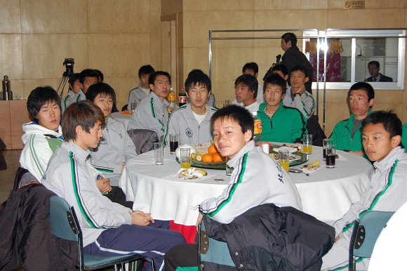 团拜会上,媒体记者还就所关心的问题向学校领导和足球队教练、队员们进行了提问,并进行了深入采访。