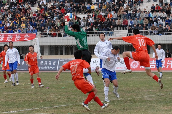 第79分钟,韩济光左路传中,队友接应后突施冷箭,但力量太小被门将没收。一分钟后,客串后卫的呼和浩特队30号白广海接队友回传球时失误,但跟进的爱国者大学生队前锋将球带出了底线。