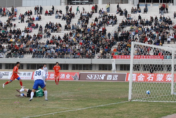 第73分钟,呼和浩特队在禁区前再次得到任意球机会,在两名队友的跑动掩护下,29号巴西外援威廉大力施射,球帖着草皮直奔网窝,3-0!