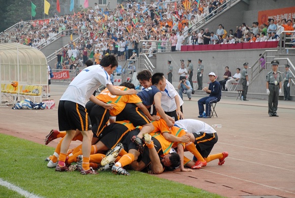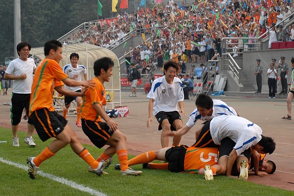 顷刻间,整个赛场沸腾了,欢呼声,雀跃声汇成了欢乐的海洋,许多球员和球迷都流下了激动的泪水。