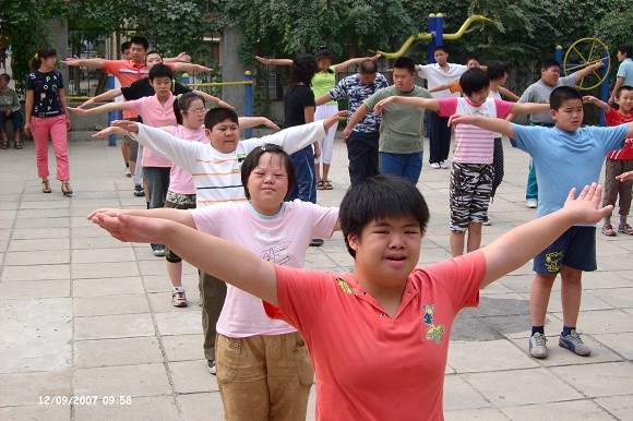 这所学校目前有学生60余人,其中5人为外地学生,老师共有20余人,在校的学生都是智力上有缺陷的残疾儿童。