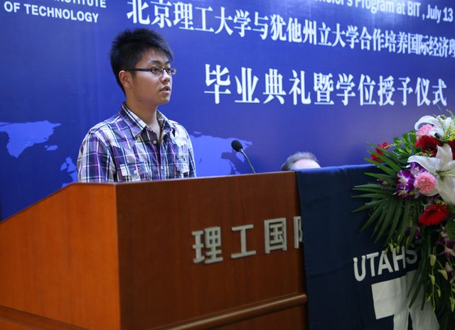 李璐同学代表全体毕业生发言,她用充满激情的语言对bb贝博艾弗森官方网站和犹他州立大学的悉心培养表达了感谢和感恩之情。
