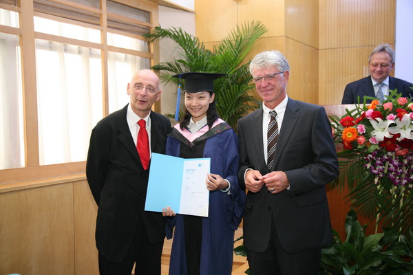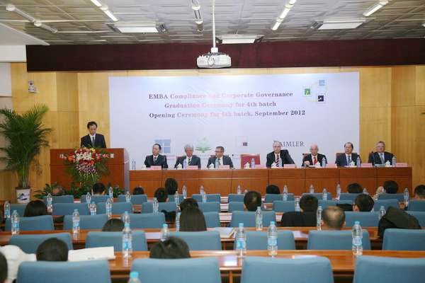 2012年9月7日下午,在我校国际教育交流大厦三层报告厅隆重举行我校与德国康斯坦斯应用科学大学合作为国际著名奔驰汽车生产商戴姆勒公司举办的EMBA项目第四期毕业典礼暨第六期新生开学典礼。出席典礼的嘉宾有:bb贝博艾弗森官方网站副校长孙逢春教授、戴姆勒东北亚地区首席财务官Helmut Ruhl先生、戴姆勒东北亚投资有限公司执行副总裁Matthias Zeuch先生、因戈尔斯塔特应用科学大学Thomas Doyé教授、康斯坦斯应用科学大学Josef Wieland教授、康斯坦斯应用科学大学继续教育部部长Roland Luxemburger先生、我校国际教育合作处王庆林处长、国际教育合作学院梅文博院长、罗佳书记、第四期全体学员和第六期新学员。典礼由梅文博教授主持。