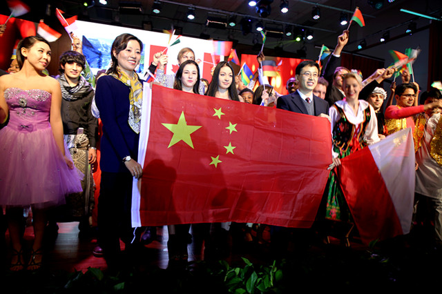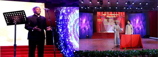 颁奖典礼结束后,是外国留学生的新年联欢会。联欢会在60多个国家学生表演的舞台秀中拉开序幕,“高音王子”赵胜利的《费加罗的婚礼》选曲和《那就是我》将晚会推向了第一个高潮;卢旺达学生查尔斯与中国学生黑泽峘的相声《中西绕口令》,展现了我校留学生高超的汉语水平;来自尼日利亚的学生表演了他们的民族舞蹈,他们是我校第一批孔子学院奖学金生,平时表现非常突出;韩国和尼日利亚双人组合带来的情歌对唱《爱你》,清新动人。联欢会还邀请了校武术队的同学前来表演,他们的精彩对阵赢来同学们的阵阵喝彩。