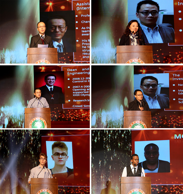 随后嘉宾们为本年度评选出的34名成绩优异、表现突出的优秀留学生和23名在全国和北京市的各项比赛中获奖的同学颁发了奖状和证书。2016年,我校留学生积极参加各类文化活动和竞赛,取得了优异的成绩,为学校赢得了荣誉。其中,巴基斯坦学生萨伊德和阿士赢得了全国优秀外国留学生称号,巴勒斯坦学生奥加等6名学生分别在北京市人民对外友好协会组织的“在京外国留学生‘我与北京’主题征文比赛”中获得一等奖、三等奖和优秀奖,南非学生孟天宇在“青春在异国闪烁”第五届留学生征文暨朗诵比赛中获得三等奖,我校留学生武术队在2016年“舞动中国 情系冬奥”来华留学生武林大会中获得团体二等奖、网络人气奖和优秀组织奖等。