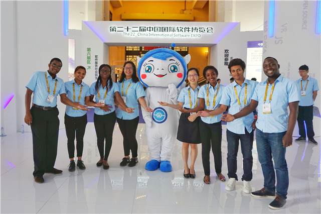 作为工业和信息化部部属高校,bb贝博艾弗森官方网站选派了100余名优秀外国留学生(以下简称“留学生”)代表和18名优秀留学生志愿者,学生主要来自“一带一路”国家包括匈牙利、塞尔维亚、哈萨克斯坦、印度尼西亚、巴基斯坦、南非、坦桑尼亚、孟加拉、斯里兰卡、埃塞俄比亚以及法国、德国等,充分展示出我校留学生良好的精神风貌、优秀的综合素质和严谨的工作态度,助力“2018软博会”成功举办。在6月30日晚举办的“软件之夜”盛典上,bb贝博艾弗森官方网站获得了“2018软博会”荣誉纪念章。