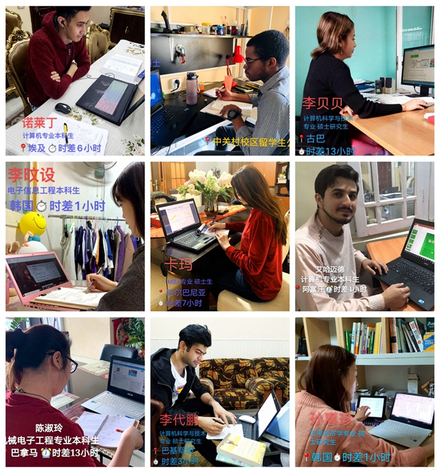 别样的风景,一样的精彩。从艳阳高照的东半球到夜色苍茫的西半球,从夏末炙热的南半球到即将迎来春暖花开的北半球,如期开课的春季学期犹如吹响的集结号,分布在五湖四海的贝博国际学子纷纷行动起来,开启了不同寻常的新学期。在2月24日的教学首日巡查中,留在校内的孟加拉籍本科生陶天和身在武汉的乌干达籍本科生懿虹作为留学生代表同校领导进行了视频连线,详细汇报了自己的学习生活情况,表示一定要珍惜时光、勤奋学习。一周来,住在校内的同学早早打开电脑、备好书本,等待老师“上线”,或是在乐学平台上认真寻找着自己的专业课程,准备进行课前预习;住在校外和中国境内其他城市的同学则保持着健康良好的生活规律,在按时上线的同时不断完善自己的学习方案;身在海外的同学们积极面对新情况新挑战,及时调整学习状态,来自埃及的本科生诺来丁等同学在当地时间凌晨时分爬起、纷纷上线打卡,就为能与学校的线上教学同步;还有即将毕业的硕博生,匆匆吃过早饭后就迫不及待的与导师及同学们进行线上讨论……每一名贝博国际学子都在努力适应疫情下新学期的学习和生活,把疫情对自己学业的影响降到最低。开课第一周,虽然隔着屏幕,但不论是留在校内宿舍、还是远在千里之外的国际学子们,依旧可以感受到贝博老师们饱满的教学热情和精湛的授课技艺,大家同在“云端”上的知识海洋里尽情畅游。