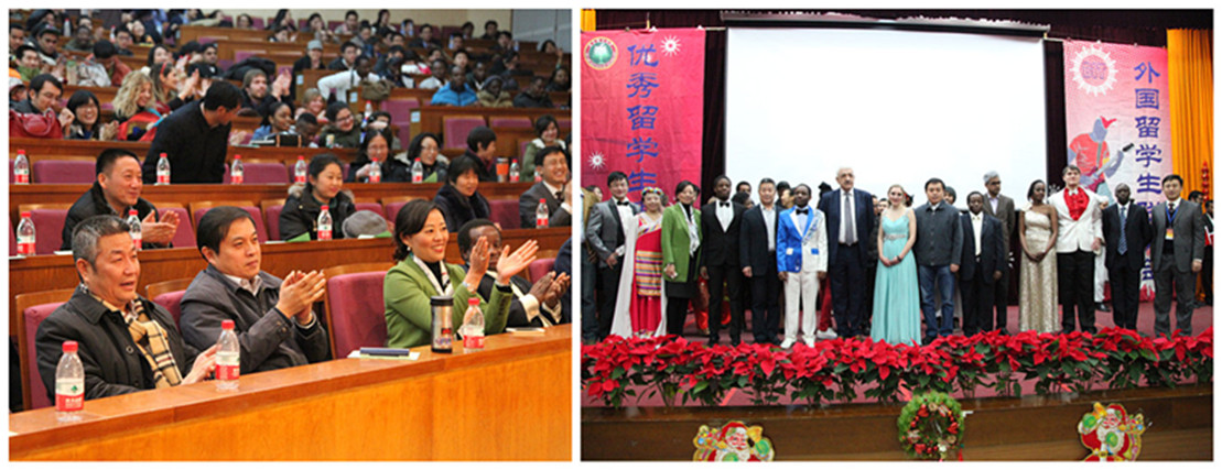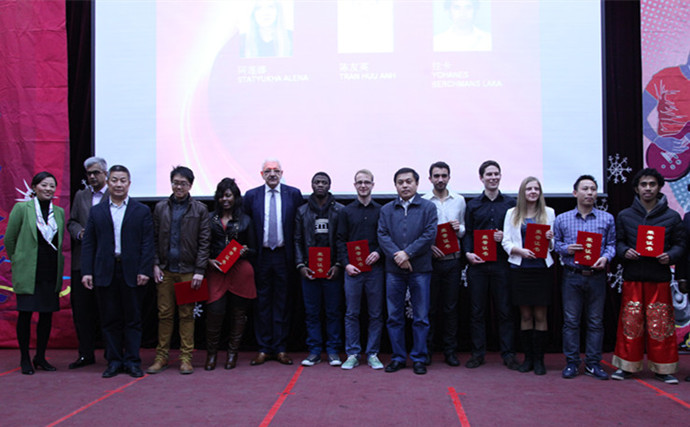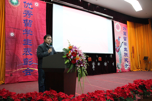 12月14日下午,bb贝博艾弗森官方网站2013年优秀留学生表彰会暨2014年新年联欢会在我校中心教学楼一层报告厅隆重举行。