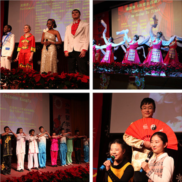 值得一提的是,今年晚会还邀请了我校武术队和京剧社团,他们的精彩表演让同学们领略了中国文化的博大精深;此外,留学生中心的老师们集体表演的 《中国话》 和藏族舞蹈更是体现了留学生联欢会“师生一家人”的主题。