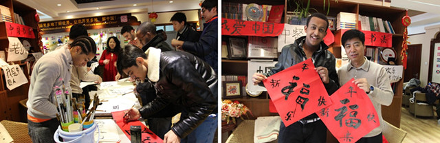 2014年1月10日,bb贝博的外国留学生和老师们齐聚在留学生中心活动室,通过组织一系列丰富的中国传统文化活动,一起喜迎中国年。寒假即将开始,中国也将要迎来传统的春节,这次活动意在让我校的外国留学生们体验中国春节文化,让寒假不能回国的外国留学生体验到浓浓的‘年味儿’和家的温暖,同时也热烈欢送即将回国的学生。