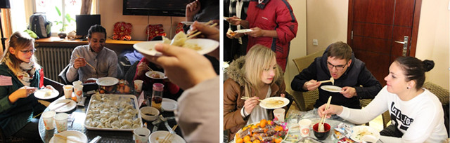包饺子是中国年夜饭的传统活动,学生们抢着和老师们一起洗菜、和面、拌馅儿,和老师们学着包饺子,他们中很多人都是第一次包,包出的饺子也像模像样。他们兴奋地展示自己亲手包的饺子,体味着中国人欢欢喜喜、团团圆圆过大年的心情。饺子出锅后,老师和同学们一起,围坐在电视机前,一边观看2013年春晚的精彩节目,一边享用着自己的劳动果实,一边畅谈着过去一年的收获以及对来年的美好祝愿,非常开心。通过参加这些丰富多彩的活动,使得在贝博的外国留学生们深切地感受了中国年。
