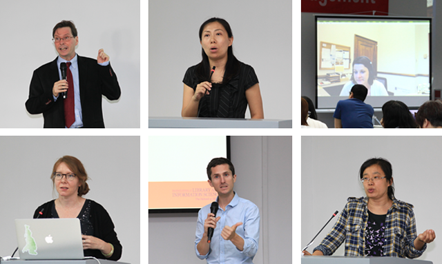 研讨班围绕当前研究数据管理的前沿应用和具体实践进行了全面系统地阐述。美国伊利诺伊大学图情学院副院长Stephen J. Downie教授介绍了大型人文领域数据仓储Hathiturst并对其元数据应用进行了深入分析,Andrea K. Thomer博士和 Nicholas Weber博士则以专题报告和案例研究形式涵盖了从研究数据管理的生命周期理论、Curation Profiles Toolkit & DMP Tool、数据清洗工具OpenRefine使用到数据引用和RDF技术等一系列主题, 伊利诺伊大学图书馆的Dr. Heidi J. Imker博士以伊利诺伊大学的研究数据服务为案例具体介绍了当前美国高校图书馆的实践情况。bb贝博艾弗森官方网站图书馆副馆长崔宇红做了题为《Research Data Management Development:a Global Inisight》的报告,从可持续发展视角对美国、英国、澳大利亚和中国的数据管理政策和实践案例进行比较分析,副研究馆员吕娜结合bb贝博艾弗森官方网站具体实践介绍了数据可视化软件工具Citespace在科研数据处理中的应用。
