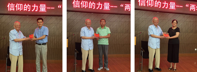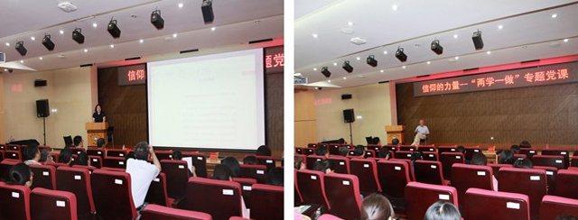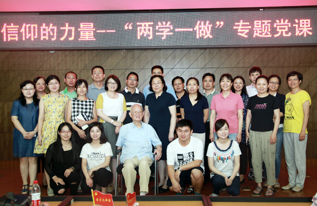 6月28日上午,图书馆党总支在一层报告厅开展了“信仰的力量”为主题的“两学一做”专题党课活动。郑焱书记做了主题报告,讲述了一位优秀共产党员、革命先辈陈毅安烈士的光荣事迹。现场还邀请了陈毅安烈士的遗腹子陈晃明先生,同台回忆父亲陈毅安烈士生前的事迹,讴歌与烈士并肩作战的革命前辈精神。