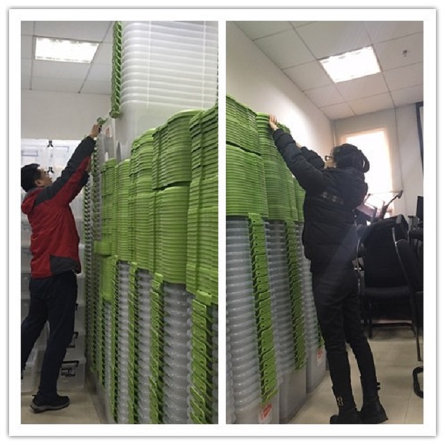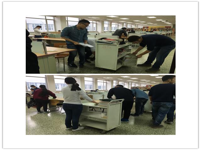 读者服务部全体人员收回500个考研收纳箱,并进行清点整理工作。