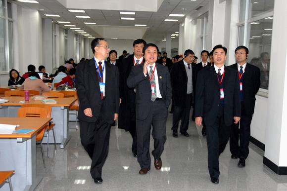 11月14日上午,教育部本科教学工作水平评估专家组成员在学校领导的陪同下来到图书馆考察工作。在图书馆大厅,张永发馆长向各位专家介绍了图书馆概况,在观看了“日新月异的bb贝博艾弗森官方网站图书馆”的展板之后,专家们实地考察了多媒体阅览室、报刊阅览室和中文自科图书阅览区等,考察过程中专家们在张馆长的讲解下边走、边看、边问。