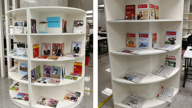 “十九大”时事新闻展。党的“十九大”是具有里程碑意义的重要会议,图书馆在一层休闲区开展“时事新闻展”,展出与“十九大”相关的报刊杂志,随时更新,方便读者及时了解会议热点,学习会议内容,领悟会议精神,用习近平新时代中国特色社会主义思想武装头脑、指导实践,树立正确的理想信念,以高尚的道德情操修身养德,完善自身修养。
