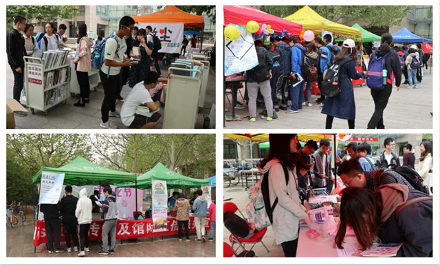 4.在良乡校区,图书馆联合了学生会、微尘志愿者协会、绿风志愿者协会、绿萌资源与环境保护协会、美韵英语协会、贝博创行等多个学生组织和社团,组织开展了“游学图书馆,集印章闯关”迎新系列活动,内容丰富、形式多样、寓教于乐。
