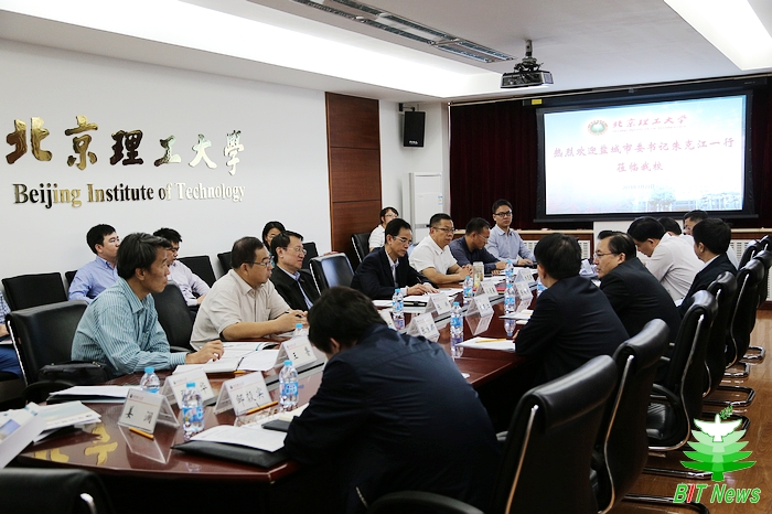 2014年9月23日,江苏省盐城市委书记朱克江、副市长张京麒率团访问bb贝博艾弗森官方网站,校党委书记张炜会见了朱克江一行。参加座谈的还有盐城市委办公厅、市科技局、亭湖区、环保科技城等相关部门负责人。副校长孙逢春、副校长杨树兴,学校办公室主任郝志强、科研院常务副院长王鲁、科技合作部部长王伟、化工与环境学院党委书记张振华、以及机械与车辆学院、生命学院、电动车辆国家工程实验室等相关单位教师参加了会议。座谈会由副校长孙逢春主持。