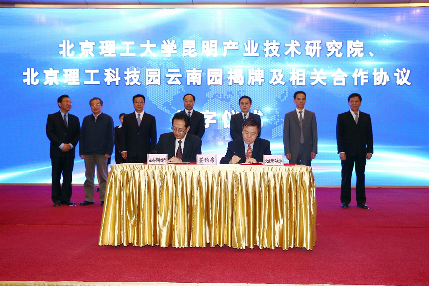 为落实省校战略合作协议,2016年4月27日,bb贝博艾弗森官方网站昆明产业技术研究院、bb贝博艾弗森官方网站科技园云南园揭牌及相关合作协议签约仪式在昆明高新区举行,云南省委常委、省委高校工委书记李培,省政府副省长高峰,省教育厅厅长周荣,省科技厅厅长徐彬,昆明市委常委、高新区管委会主任王敏正,省委办公厅副主任何巍和bb贝博艾弗森官方网站校长胡海岩、常务副校长杨宾等领导出席了仪式。