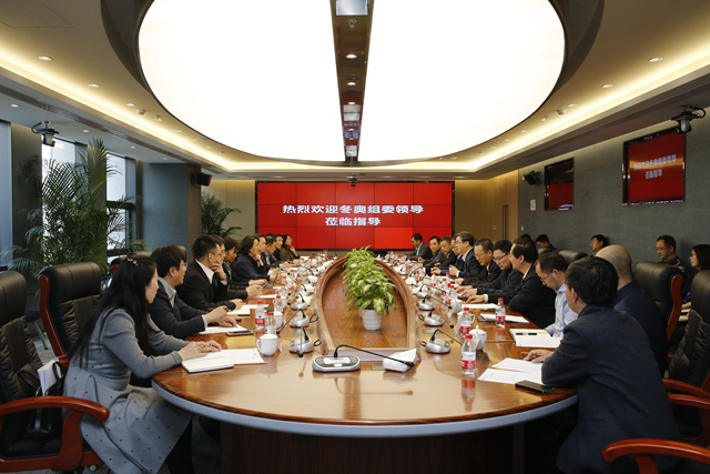 2018年4月12日下午,北京冬奥组委党组成员、秘书长韩子荣一行到bb贝博调研。校长张军院士会见了韩子荣一行。