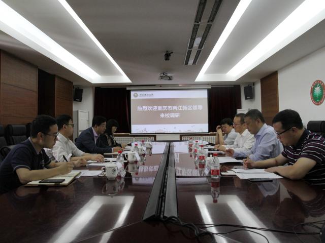 5月22日上午,重庆市两江新区党工委委员、管委会副主任杨立杰一行来bb贝博调研。副校长龙腾参加座谈。