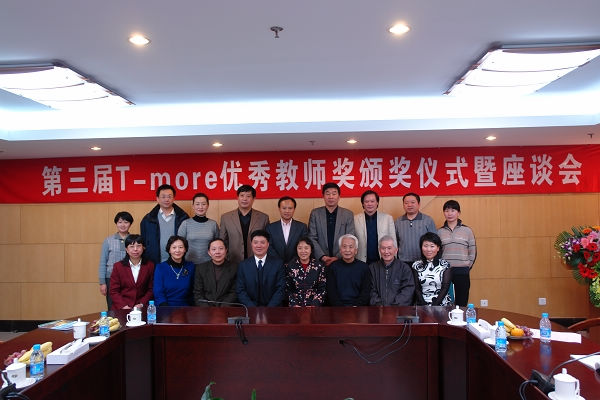 党委副书记侯光明首先介绍“T-more优秀教师奖”设立以来的成果回顾;校长助理、教务处长庞思勤宣读“bb贝博艾弗森官方网站第三届T-more优秀教师奖评选结果通知”,向获奖教师表示祝贺;校领导和T-more基金会代表向获奖教师颁发了奖状和奖杯。随后,一等奖获得者李林教授代表获奖教师发言,05级信息学院学生王冠宇代表学生发言。在座谈中获奖教师结合自身教学工作和获奖感受与校领导、T-more基金会代表进行了交流。欧亚平先生希望通过“T-more”的感召力,更多的校友为母校做些有意义的事。最后全体获奖者和领导、来宾合影留念。