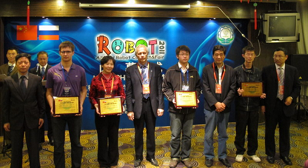 在机器人表演中,我校新型节肢机器人以其精彩绝伦的表演技压群雄,获得了"最佳团队奖"。该机器人具有四十多个电机,能顺利完成几十种步态的运动,其多电机协调控制技术体现了我校大学生先进的电机控制水平,在国际上也属佼佼者。新型节肢机器人的表演在现场引起轰动反响,受到众多高校及国际友人的关注,赛后俄罗斯萨玛拉国立航空航天大学、新西伯利亚国立技术大学、圣彼得堡信息科学o机械与光学大学的师生们纷纷前来与我方进行交流。