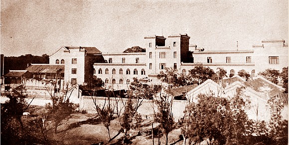 北京工业学院的师生在参加建校劳动(此建筑现为理工附小楼)