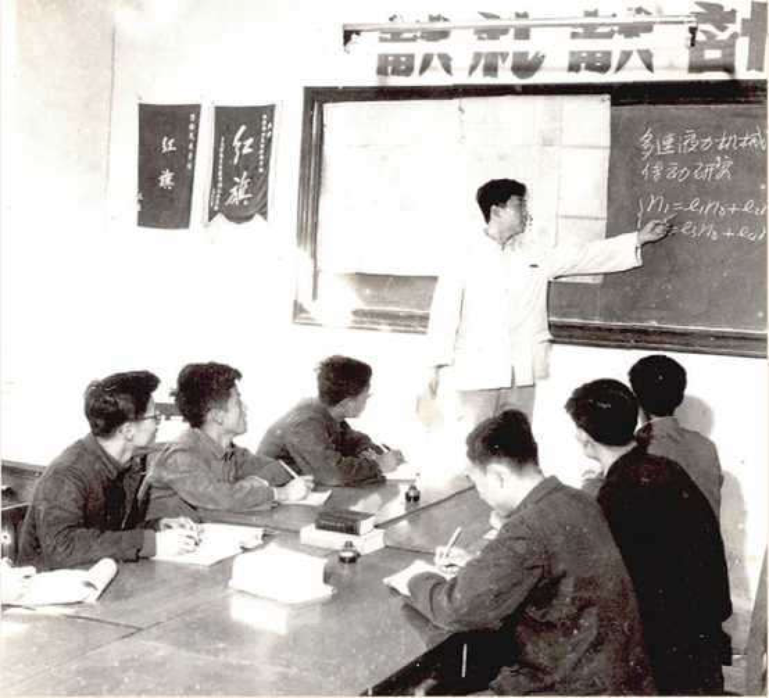 ▲三系一组教师们正在进行多速液力传动科学研究的学术报告