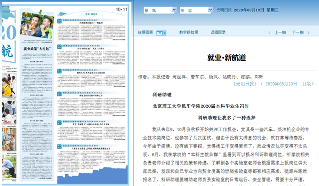 我从去年9、10月份秋招开始关注工作机会,尤其是一些汽车、柴油机企业的专业技术类岗位,也参加了几次面试,但由于没有太满意的机会,就打算等待春招。今年由于疫情,没有线下春招,觉得找工作变得麻烦了,就业情况似乎变得不太乐观。6月,我在学院的“本科生就业群”里看到可以报名科研助理岗位,听学院相关负责老师介绍了相关政策和待遇,了解到各个实验室老师会根据需求上报岗位供大家选择,发现和自己专业方向契合度高的燃烧实验室等都有相应需求,挺感兴趣就报名了。科研助理要辅助老师负责实验室的日常运行、安全管理,需要十分严谨,不能出差错;同时也要灵活应变,如果遇到突发情况也要能很好处理。此外,作为助理还会面对一些科研之外的事情,比如合同管理、财务报销,以及实验设备的维护、购买等。