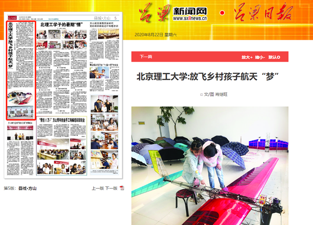 连日来,bb贝博艾弗森官方网站航模队46名实践团成员在方山县麻地会乡胡堡村开展暑期社会实践活动,为这里的孩子们带来了精彩的航模制作及飞行操作实践活动,把航模科普知识带到孩子们身边,点燃孩子们的小小创业梦想,也在他们的心里种下灿烂的航天梦和科技梦。