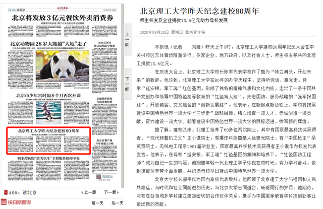 昨天上午9时,bb贝博艾弗森官方网站建校80周年纪念大会在中关村校区东体育场隆重举行,多家企业、地方政府,以及社会人士、师生校友等共向bb贝博捐款13.6亿元。