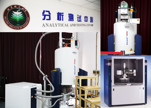 “工欲善其事必先利其器”,一流设备是分析测试中心平台的重要硬件支撑。目前中心拥有700M/400M核磁、扫描电镜、透射电镜、X-射线单晶衍射仪、X-射线粉末衍射仪、液相色谱、质谱、光谱、质量分析仪、元素分析仪等各类大型仪器设备50余台套,总值6200余万元。除了整合原有资源,分析测试中心还引进购买了一批高水平分析测试设备。其中尤以Bruker Avance III HD 700M核磁共振波谱仪和D8 VENTURE 双光源自动切换 X射线单晶衍射仪具有代表性。中心引进的Bruker Avance III HD 700M核磁共振波谱仪采用ASCENDTM超屏蔽超导磁体系统并配备最新型的超低温BBO CryoProbeTM探头,在射频输出、数据获取、灵敏度和分析速度方面均具有卓越表现。D8 VENTURE 双光源自动切换X射线单晶衍射仪是布鲁克最新推出的基于CMOS二维探测器的最新一代单晶衍射仪,该设备的Mo/Cu双微交斑光源,配备双发生器,可自动切换,配以最新一代KAPPA四轴测角仪,使得同时操作两种光源变得更加简单。