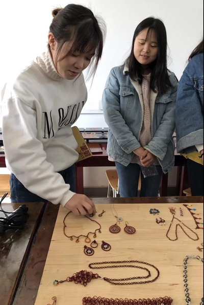 “作为教师,我们就是要想尽办法给学生呈现最好的文化宝藏,这样才能将中华文化传承下去。”2010年,带着对传统工艺美术的热爱和满满的成绩,满芊何从日本神户艺术工科大学访学归来,在学校的支持下,将蜚声国际的珐琅工艺课程,带到bb贝博学子的身边。满老师工作室里,遍布着进口颜料、品牌宣纸、外文资料……,为上好“首饰设计”等传统工艺课程,成本着实不低。带着传承中华传统文化、培育一流人才的使命,满芊何十几年来,将一场场传统艺术与现代文明的结合、一次次中华文化与青年价值的碰撞,深植在了学生的心中。