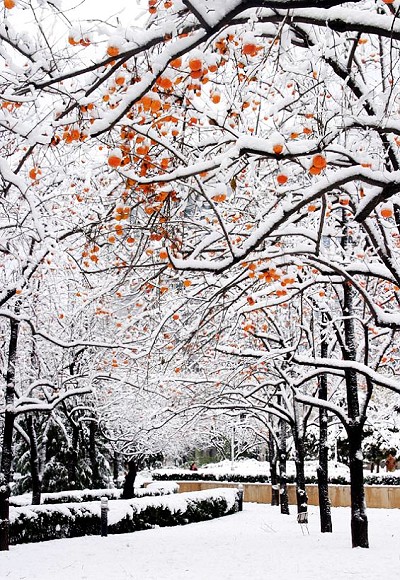 雪映柿树